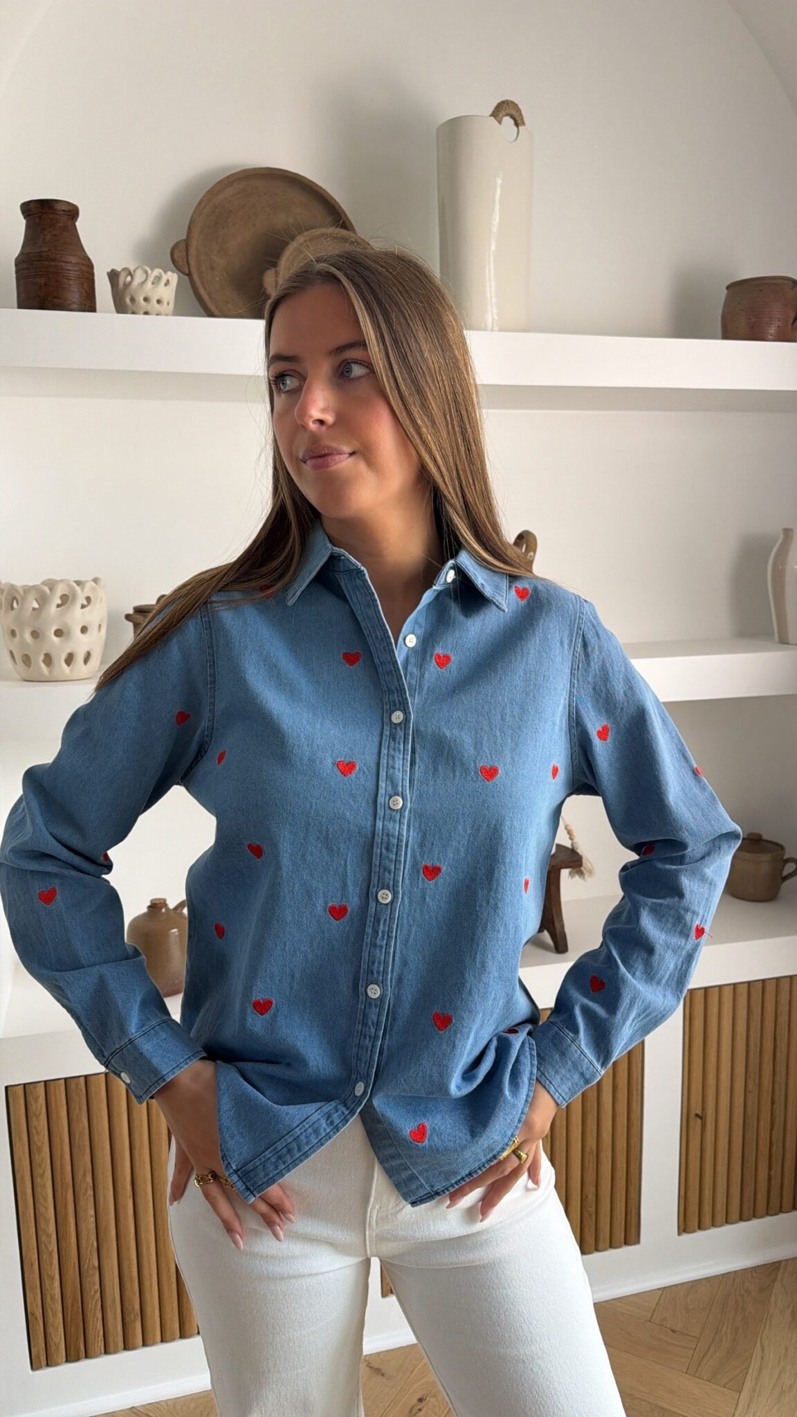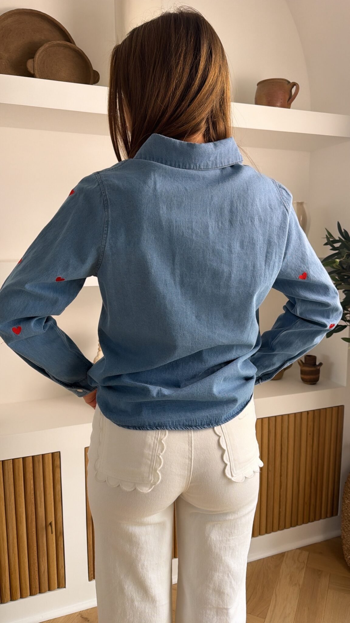 – Chemise en jean avec cœur rouge