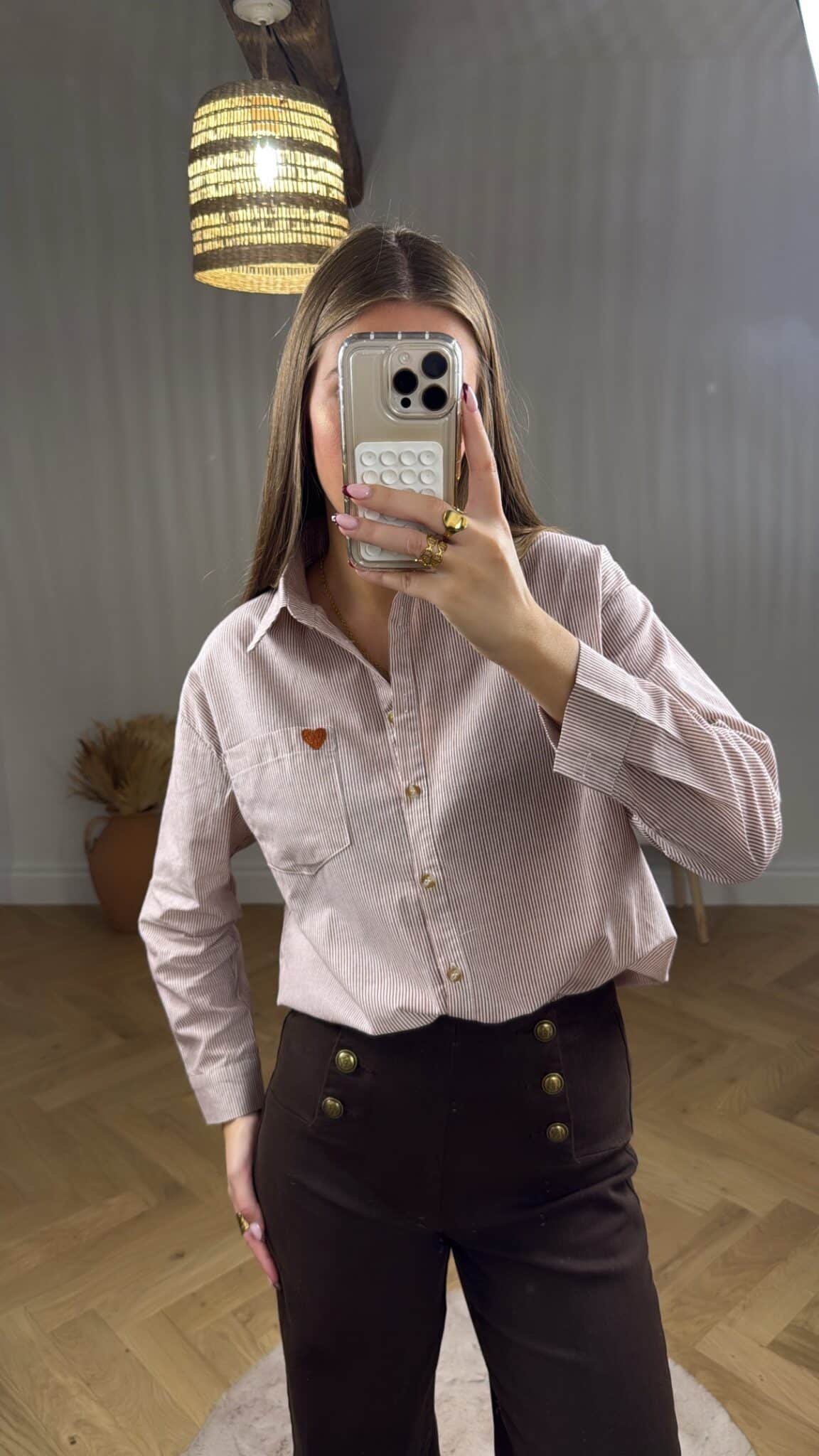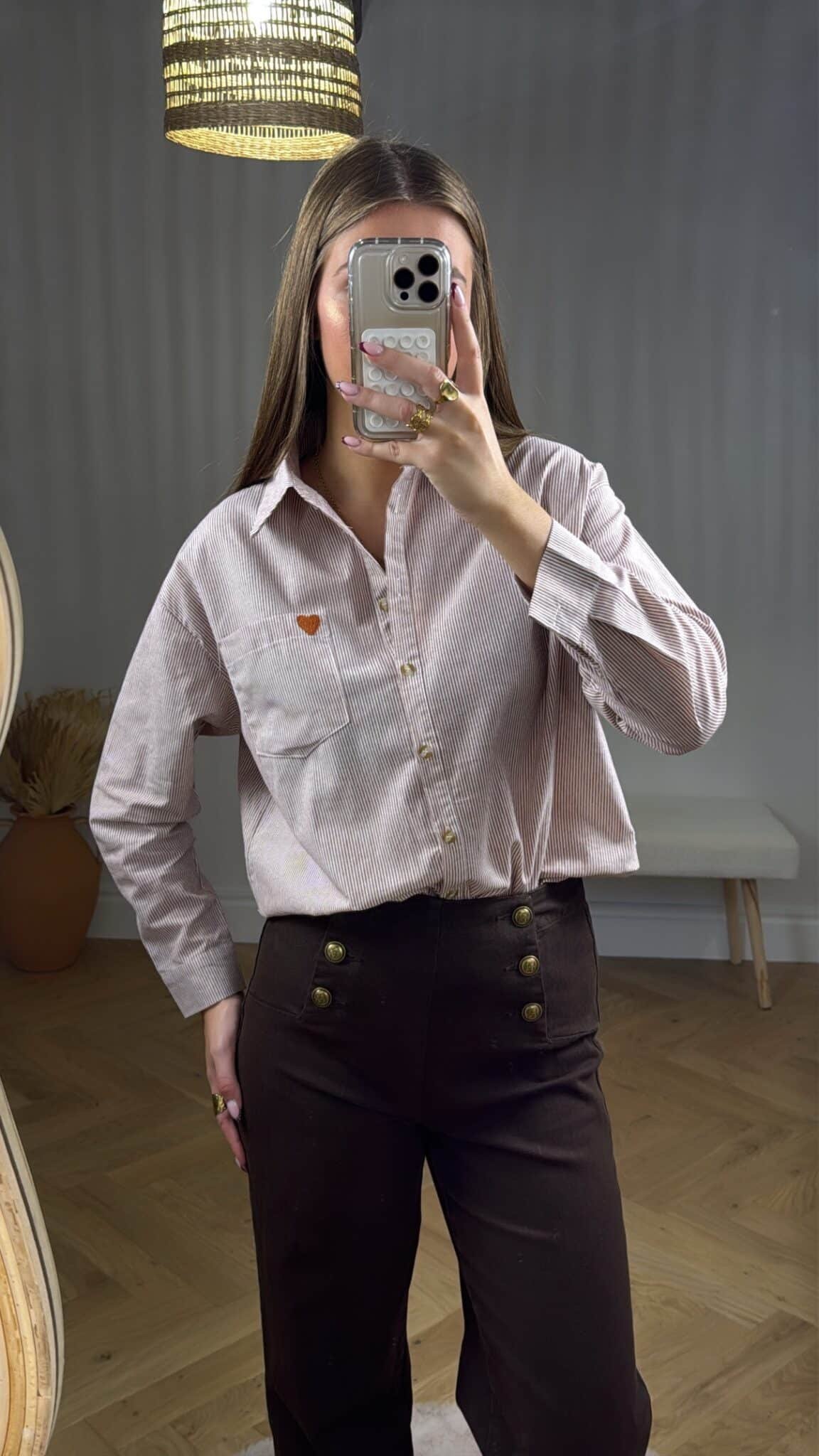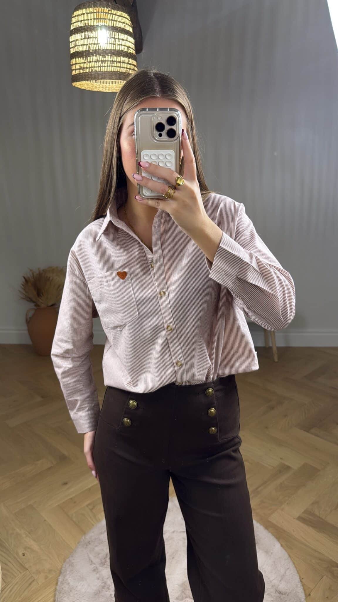 – Chemise rayée camel et blanc