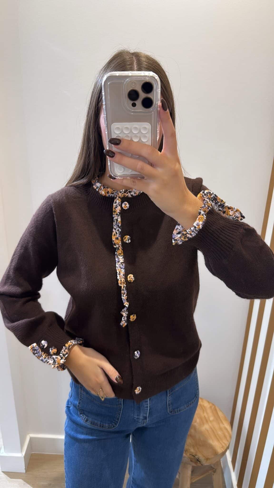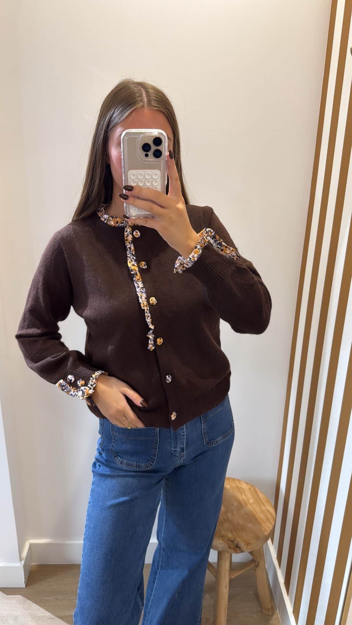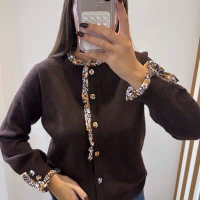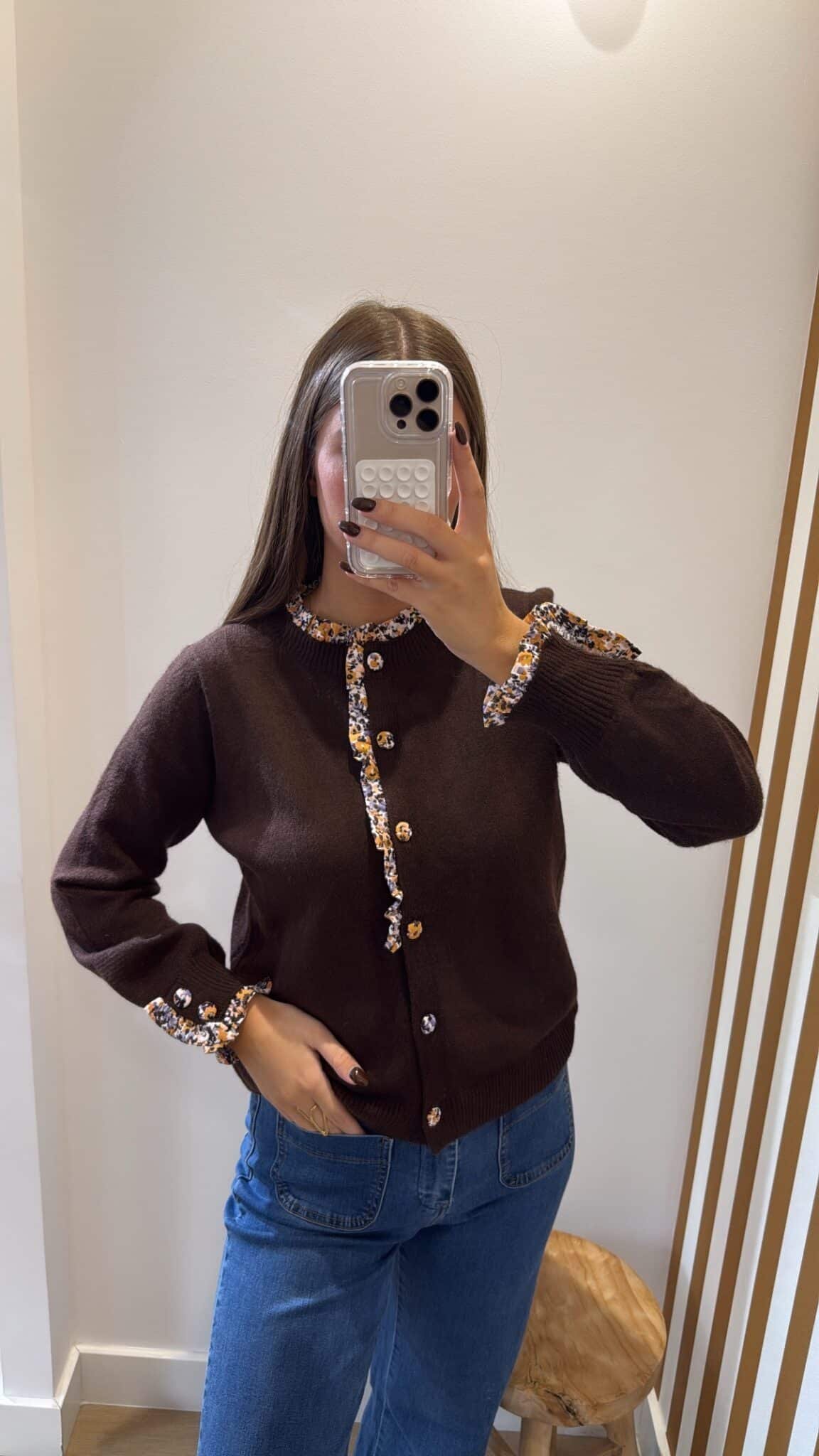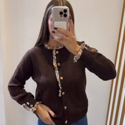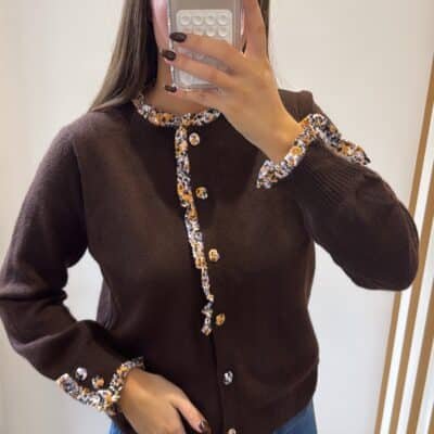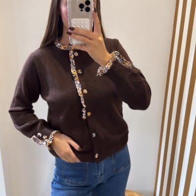 – Gilet marron avec détails de boutons fleurs
