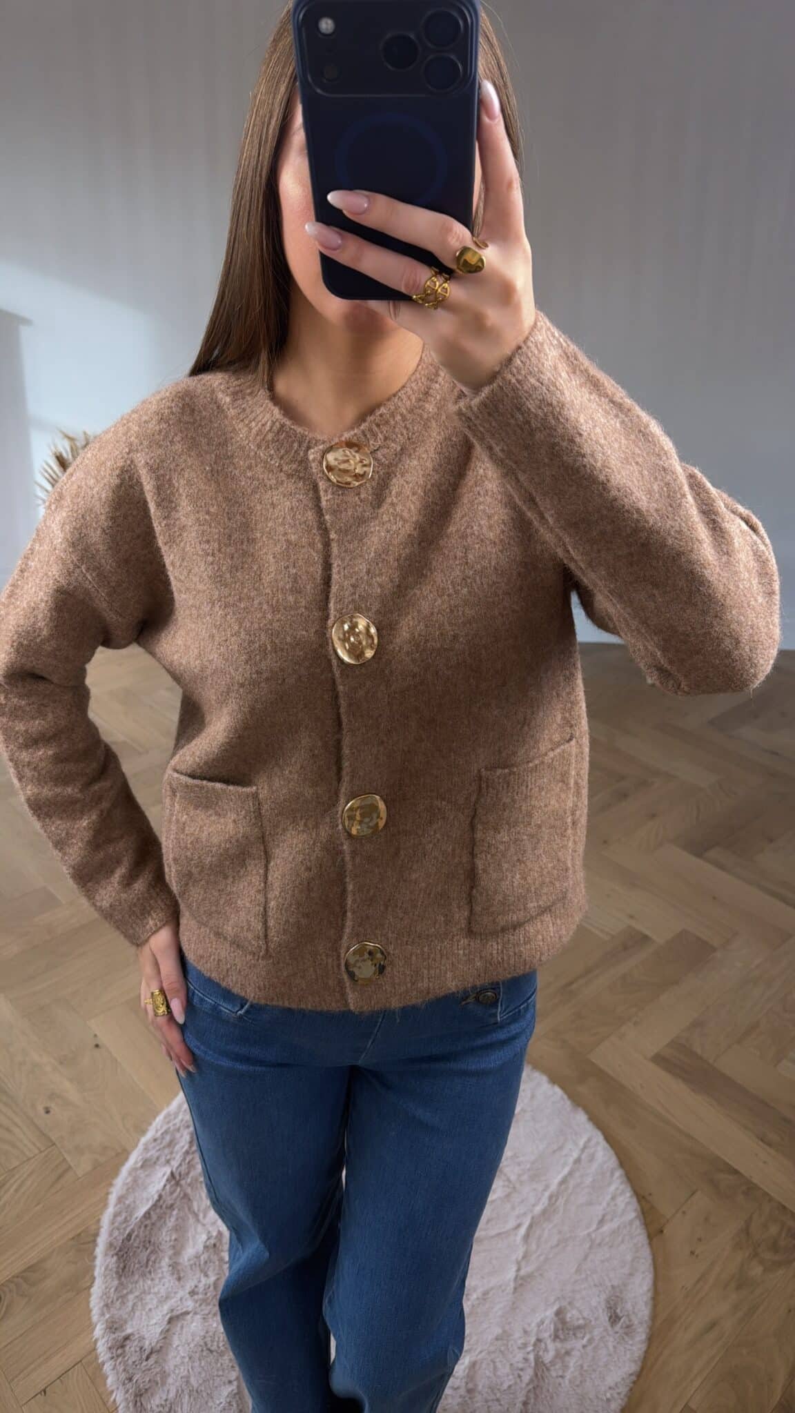 – Gilet camel avec gros boutons doré