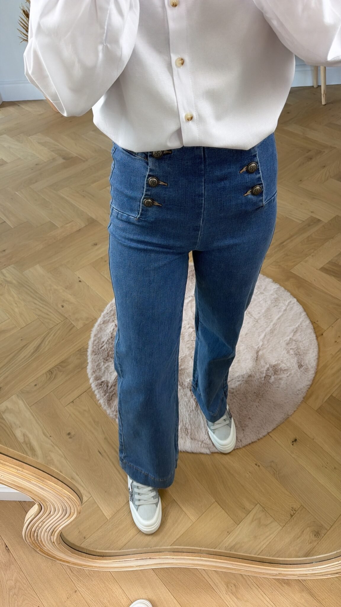 pantalon coupe évasé en bas avec détails de boutons sur le haut du jean