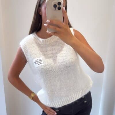 – Pull manches courtes avec détails d’étiquette sur le haut du pull