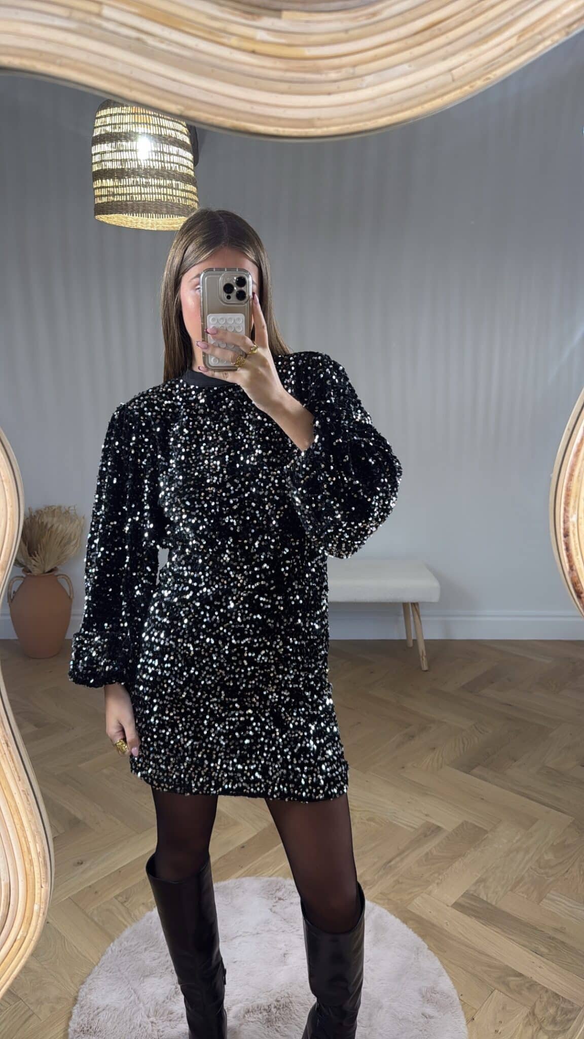 • Col rond et manches longues pour un look chic